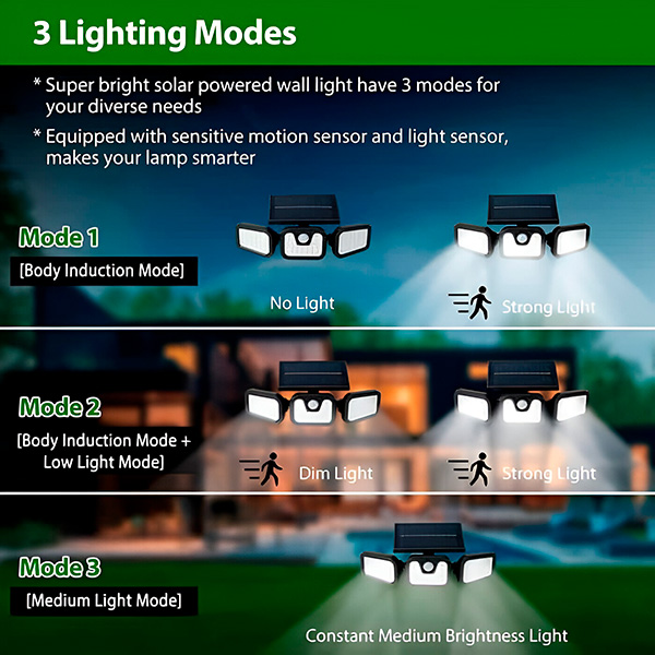 3 inteligentné režimy osvetlenia – Vyberte si úroveň jasu, ktorú potrebujete!