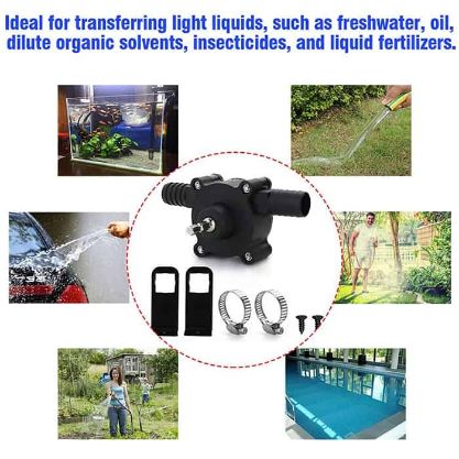 • Vysoko výkonné vodné čerpadlo môžete pripojiť k ručnej vŕtačke na rýchle čerpanie a vylievanie tekutín.