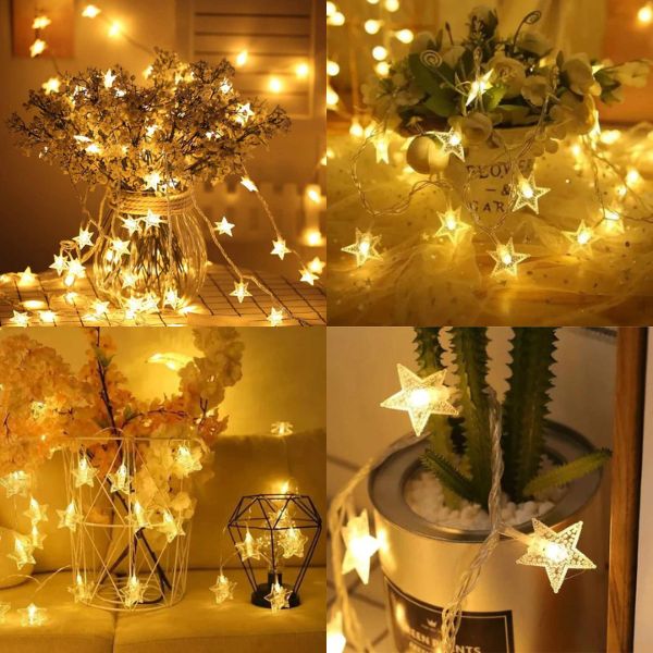 LED svetelné reťaze s hviezdičkami možno ľahko umiestniť alebo zavesiť na steny, okná, dvere, podlahy, stromy, klavíre, do záhrad atď. Môžete ich použiť na dekoráciu vo svojom obľúbenom dizajne a štýle. Skvele sa hodia na pridanie explózie upokojujúcich farieb do detskej alebo tínedžerskej izby alebo dokonca na vysokoškolskú internátnu izbu. Tiež ich môžete zavesiť nad verandu, dvere, okno, čelo postele alebo toaletný stolík – alebo ich použiť ako dekoráciu na stenu.