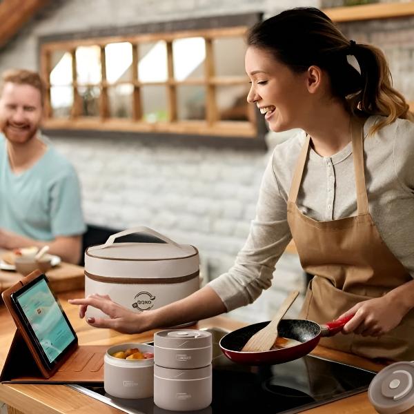 Vychutnajte si teplé domáce jedlá, nech ste kdekoľvek, s touto viacvrstvovou súpravou nádob na jedlo.
