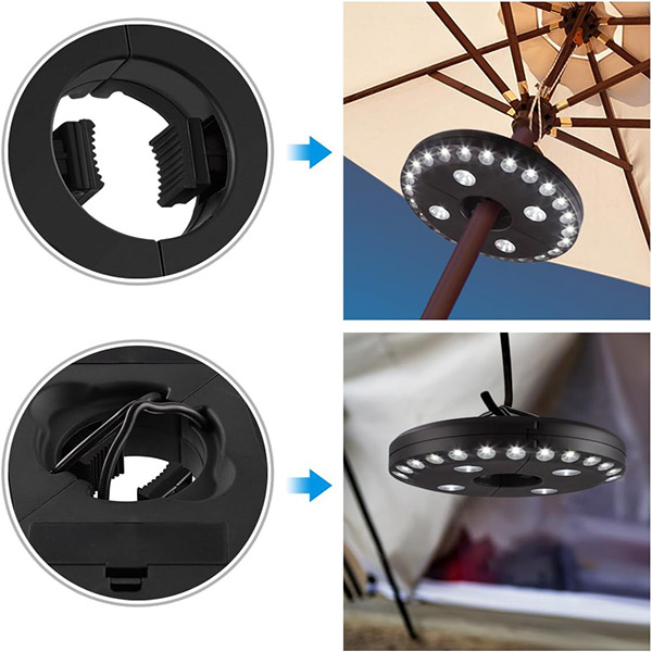 Na rozdiel od bežných svetiel na dáždnik, BRELLAGLO funguje tam, kde ho potrebujete. Pripnite ho na dáždnik pre osvetlenie terasy alebo použite zabudované háčiky na zavesenie—ideálne na kempovanie a vonkajšie dobrodružstvá.