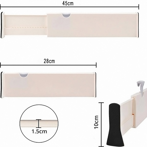 Či už ide o kuchynské náradie, kúpeľňové potreby alebo ponožky v spálni, tieto priečky sa dajú nastaviť od 28 cm do 45 cm, aby pasovali do väčšiny zásuviek. Priestor si môžete prispôsobiť presne podľa svojich potrieb.