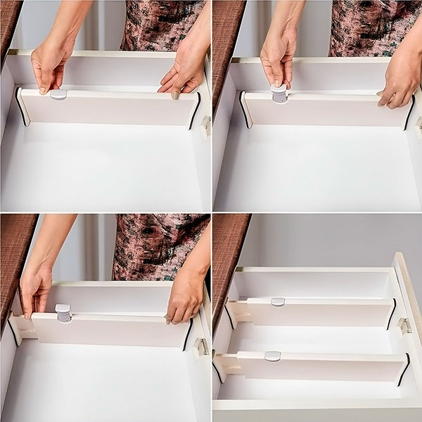 4x Nastaviteľný oddeľovač do zásuviek alebo políc | DIVISERINO
