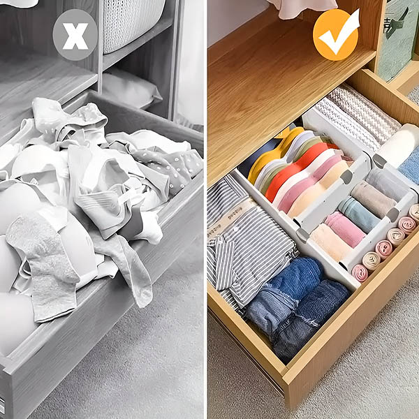 5x Nastaviteľný oddeľovač do zásuviek alebo políc | DIVISERINO