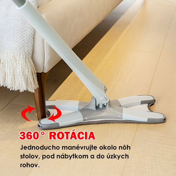 Ohybná, flexibilná mopová hlava bez námahy dosiahne do úzkych priestorov—pod nábytok, za toalety, okolo nôh nábytku a do rohov—takže nemusíte.